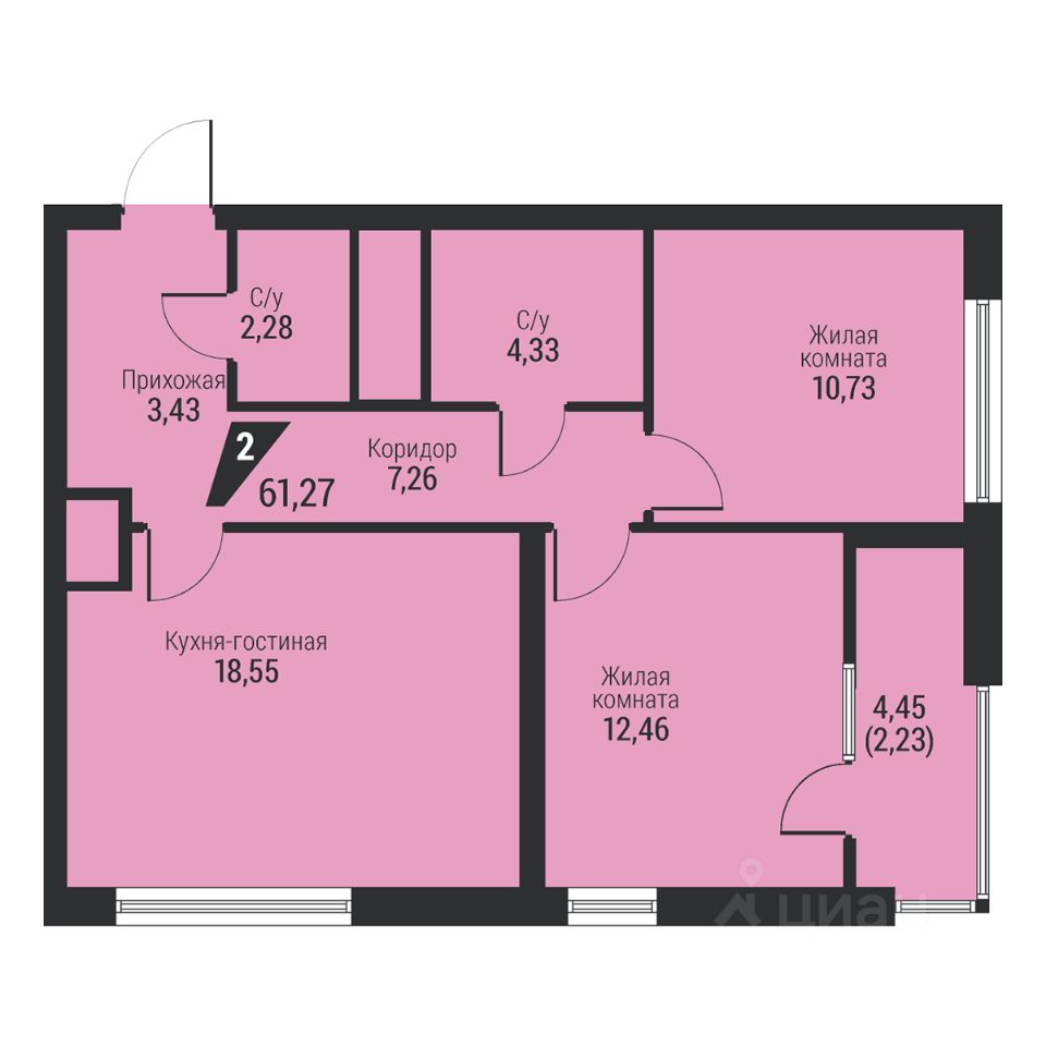 Общая площадь61,27 м²