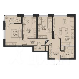 Общая площадь78,41 м²