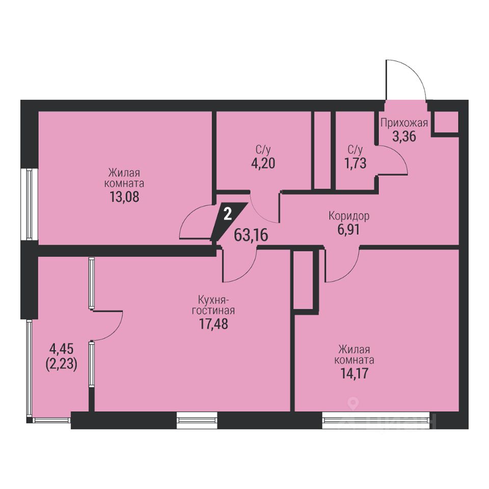 Общая площадь63,16 м²