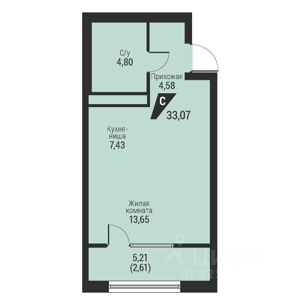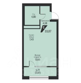 Общая площадь33,07 м²