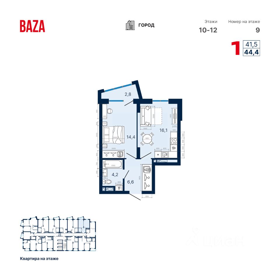 Продаётся квартира в Квартал-парк "Каменные палатки" от застройщика BAZA Development (покупка квартиры защищена банком). 1-комнатная квартира, 44,46 м², 132, 4 очередь, 13 секция. Стоимость указана с учетом отделки white box.