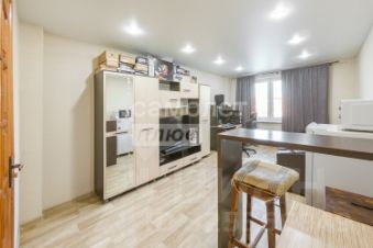 -в комнате остается мебель (диван, кухонный гарнитур, стулья, барная стойка, стенка со шкафами и ТВ-зоной)