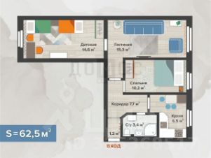 Общей площадью 58,5 кв.м. на 5-ом этаже в 5-ти этажном доме.
