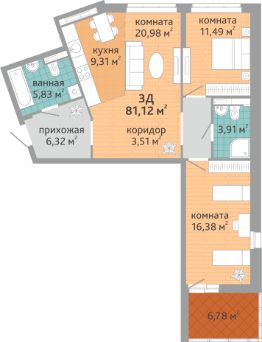 Продаётся 3-комнатная квартира в сданном доме (Коперника, 33), срок сдачи: III-кв. 2025, общей площадью 81.12 кв.м., на 13 этаже. Новый жилой дом от застройщика "СЗ Дельа-Групп" расположен по адресу: г. Екатеринбург, улица Викулова (дублёр).