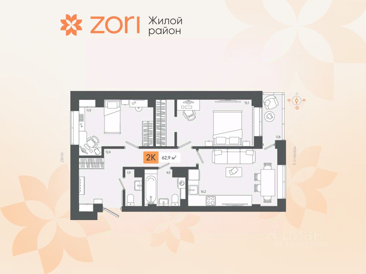 Добро пожаловать в ЖК ZORI — новый жилой район, входящий в Екатеринбургскую агломерацию, расположен в 20 минутах от УРФУ и в 5 минутах от Березовского. Здесь городской комфорт сочетается со спокойствием природы, создавая идеальное пространство для счастливой жизни. Проект реализуется поэтапно: ввод в эксплуатацию первой очереди запланирован на начало 2026 года, а завершение строительства всего проекта намечено на 2027 год. Участок площадью 20 гектаров включает современную инфраструктуру, низкую плотность застройки и просторные дворы. Прилегающий сосновый лес с прогулочными тропами, лыжной трассой (в летнее время — велосипедной дорожкой) делает район идеальным местом для активного отдыха на свежем воздухе. На территории района предусмотрено всё необходимое для комфортной жизни: торговый центр с магазинами, кафе и фитнес-залом, детские образовательные и дошкольные учреждения. На первых этажах домов — продуктовые магазины, аптеки, пекарни и пункты выдачи заказов. Всё это — в шаговой доступности. Первая очередь состоит из 4 домов по 6-8 этажей, окружающих просторный двор площадью 1 Га. Здесь размещены воркаут-комплекс, детские площадки по возрастам, стритбольная площадка, полоса препятствий, многочисленные зоны отдыха и амфитеатр под открытым небом. Парковка наземная, за пределами двора. Передача ключей — I квартал 2026 года. Вторая очередь включает 2 дома по 8 этажей и 3 тематических двора с общим доступом, расположенных на стилобате. Во дворах оборудованы детские площадки по возрастам, зоны отдыха, рабочие пространства на свежем воздухе, спортивные площадки, тихая зона с ленивым ручьем. В подземном паркинге предусмотрены кладовые. Передача ключей — I квартал 2027 года. Третья очередь состоит из 2 домов по 8 этажей с двором на стилобате. Внутри двора расположены детские площадки, зоны для спорта и отдыха, уникальная игровая квартира на свежем воздухе. Также предусмотрен закрытый теплый паркинг с кладовыми. Передача ключей — IV квартал 2026 года. Чувство домашнего комфорта возникает уже в холле: безбарьерная среда, теплые тамбуры, умные домофоны, мягкие зоны ожидания, скоростные лифты. Для удобства жителей предусмотрены колясочные и велосипедные комнаты с доступом по смарт-карте. Квартиры сдаются с отделкой "под чистовую" или с готовым ремонтом от застройщика по проектам "эко-светлый", "эко-темный" и "эко-лайт". Смарт-планировки включают мастер-спальни, гардеробные и теплые лоджии с панорамным остеклением. В каждой квартире установлена система телеметрии для автоматического учёта коммунальных услуг. Комфортный выезд из района предусмотрен как в сторону Березовского, так и в сторону Екатеринбурга, со стороны ЖБИ. Есть выезд на ЕКАД, что позволяет быстро добраться до любой точки города. После сдачи первой очереди начнет курсировать маршрутный автобус до Березовского и до площади Кирова (перед УрФУ). Жилой район ZORI — новый город здоровой и счастливой жизни для вас и вашей семьи!