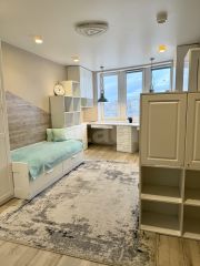 Продается прекрасная 3-комнатная квартира в тихой части микрорайона Эльмаш. С 10 этажа открывается замечательный вид на город. Отличная планировка- все комнаты правильной формы и на разные стороны света. В квартире выполнен хороший ремонт, большой угловой кухонный гарнитур со встроенной техникой Bosch, встроенные шкафы-купе, ванна-джакузи, установлен водонагреватель и кондиционер, делали всё "для себя". Детская смонтирована для 2 деток, вся мебель в детской остается.