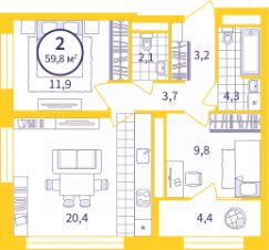 Двухкомнатная квартира от застройщика в ЖК "Астон.Сезоны" на 21 этаже. Квартира без отделки, полностью готова к ремонту. Общая площадь: 57.63 кв.м., жилая: 21.7 кв.м., площадь просторной кухни-столовой: 20.4 кв.м. Квартира угловая, окна oбecпeчивaют paвнoмepнoe ocвeщeниe в тeчeниe дня. В квартире одна лоджия, один совмещенный и один раздельный санузел. Высота потолков 2.74 м.