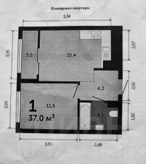 Общая площадь, с учетом лоджии, 38,6 кв.метров, окна выходят во двор