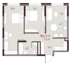 Общая площадь60,1 м²