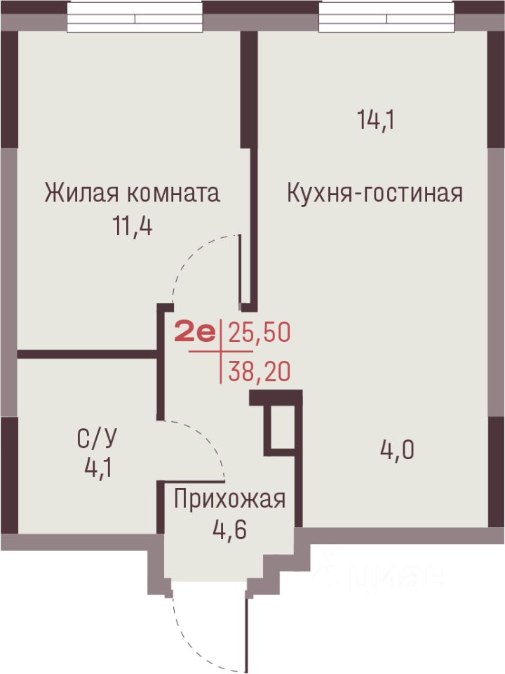 Общая площадь38,2 м²