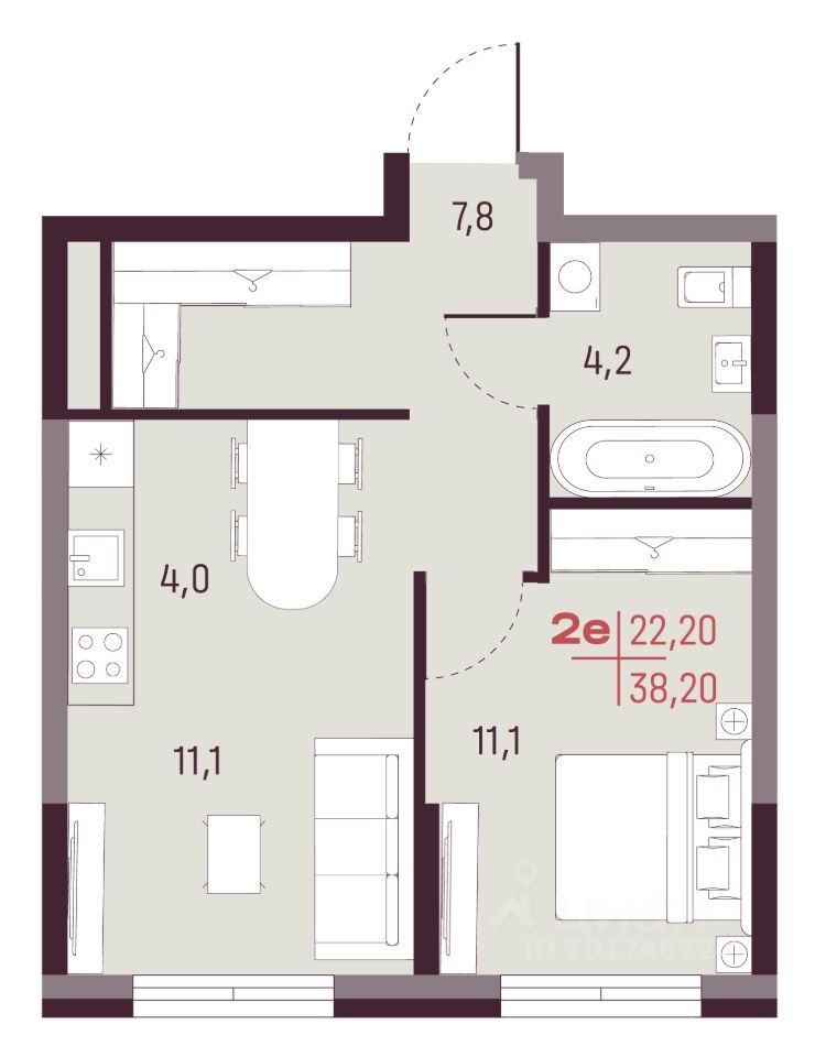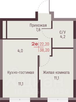Общая площадь38,2 м²