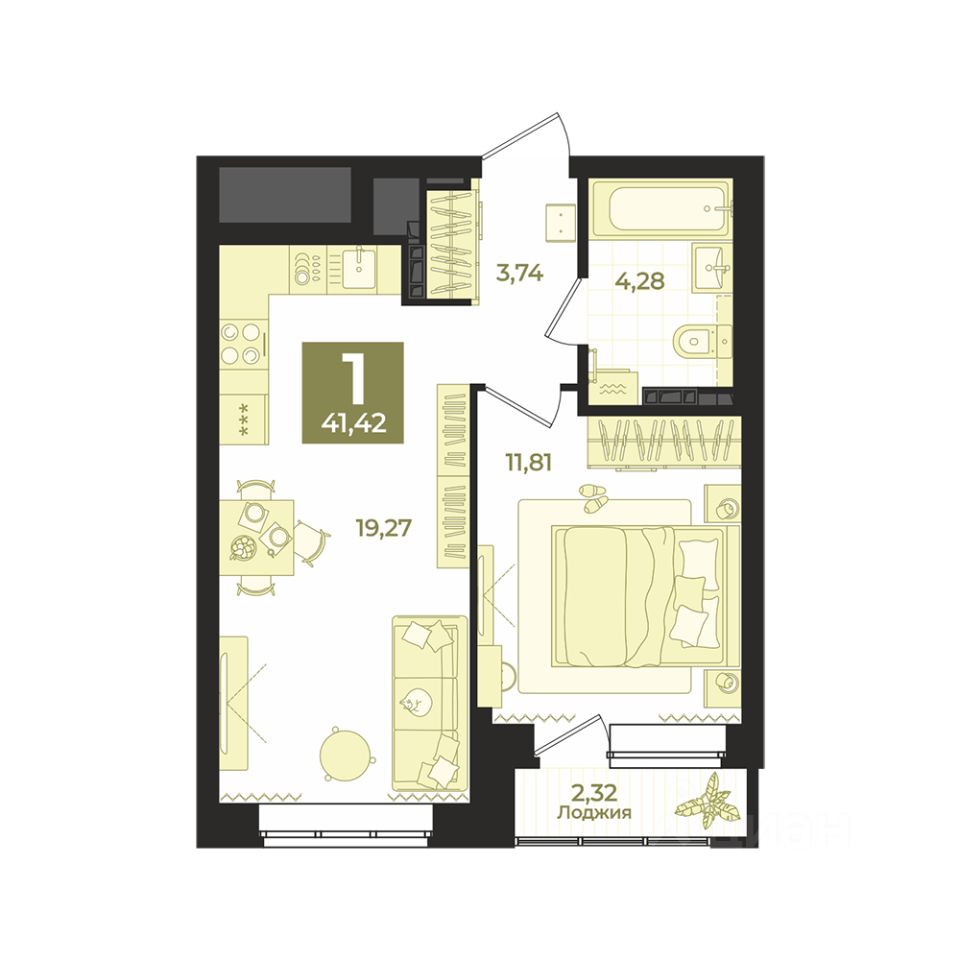 Общая площадь41,42 м²