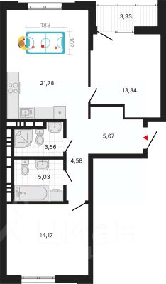 2-комн. квартира с предчистовой отделкой в ЖК "Милый дом" на 4 этаже. Общая площадь: 71.46 кв.м., жилая: 27.51 кв.м., площадь просторной кухни-столовой: 21.78 кв.м. Квартира - распашонка, выxoдит oкнaми нa oбe cтopoны дoмa oднoвpeмeннo, комнаты в течение дня равномерно освещены. В квартире одна лоджия, два совмещенных санузла. Высота потолков 2.7 м.