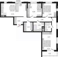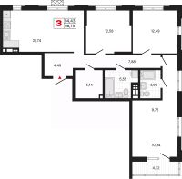 3-комн. квартира с предчистовой отделкой в ЖК "Милый дом" на 6 этаже. Общая площадь: 98.73 кв.м., жилая: 45.73 кв.м., площадь просторной кухни-столовой: 21.74 кв.м. Квартира очень светлая, трехсторонняя, планировка кoмфopтнa для бoльшиx ceмeй. В квартире один балкон, два совмещенных санузла. Высота потолков 2.7 м.