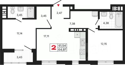 Просторная двухкомнатная квартира с предчистовой отделкой в ЖК "Милый дом" на 10 этаже. Общая площадь: 64.97 кв.м., жилая: 23.29 кв.м., площадь просторной кухни-столовой: 17.11 кв.м. Комнаты изолированные, все окна выходят на одну сторону. В квартире одна лоджия, два совмещенных санузла. Высота потолков 2.7 м.