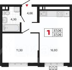 Просторная однокомнатная квартира с предчистовой отделкой в ЖК "Милый дом" на 2 этаже. Общая площадь: 37.06 кв.м., жилая: 11.3 кв.м., площадь просторной кухни-столовой: 16.8 кв.м. Все окна выходят на одну сторону. В квартире один совмещенный санузел. Высота потолков 2.7 м.
