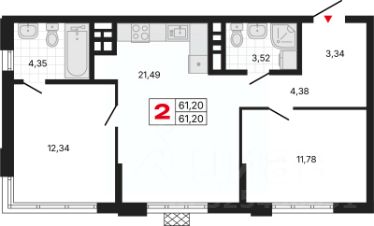 2-комн. квартира от застройщика с предчистовой отделкой в ЖК "Милый дом" на 5 этаже. Общая площадь: 61.05 кв.м., жилая: 24.12 кв.м., площадь просторной кухни-столовой: 21.49 кв.м. Квартира угловая, очень светлая, естественная вентиляция при открытии окон. В квартире два совмещенных санузла. Высота потолков 2.7 м.