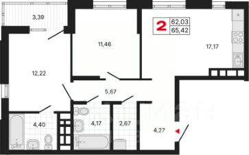 Просторная 2-комн. квартира с предчистовой отделкой в ЖК "Милый дом" на 20 этаже. Общая площадь: 65.42 кв.м., жилая: 23.68 кв.м., площадь просторной кухни-столовой: 17.17 кв.м. Квартира угловая, идеально подойдет любителям тишины и панорамных видов. В квартире одна лоджия, два совмещенных санузла. Высота потолков 2.7 м.