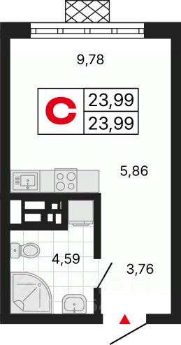Продается 1-комн. квартира-студия от застройщика с предчистовой отделкой в ЖК "Милый дом" на 10 этаже. Общая площадь: 23.99 кв.м., площадь гостиной 15.64 кв.м., из которых 5.86 кв.м. выделено под кухонную зону. Все окна выходят на одну сторону. В квартире один совмещенный санузел. Высота потолков 2.7 м.