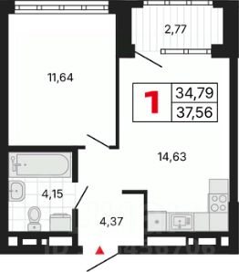 Просторная 1-комн. квартира с предчистовой отделкой в ЖК "Милый дом" на 16 этаже. Общая площадь: 37.56 кв.м., жилая: 11.64 кв.м., площадь просторной кухни-столовой: 14.63 кв.м. Все окна выходят на одну сторону. В квартире одна лоджия, один совмещенный санузел. Высота потолков 2.7 м.