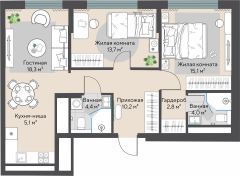 Продаётся 2-комнатная квартира в строящемся доме (Секции 2.3-2.4), срок сдачи: I-кв. 2028, общей площадью 73.6 кв.м., на 26 этаже.