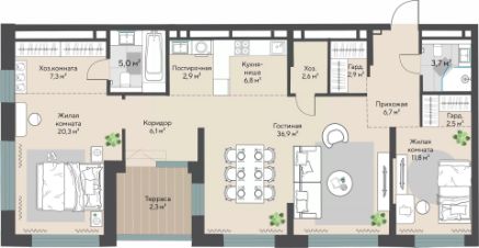 Продаётся 2-комнатная квартира в строящемся доме (Секции 2.3-2.4), срок сдачи: I-кв. 2028, общей площадью 117.8 кв.м., на 27 этаже.