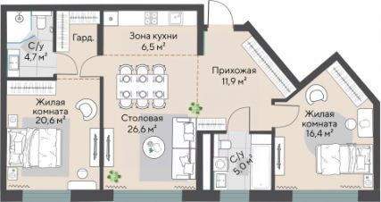 Продаётся 2-комнатная квартира в строящемся доме (Секции 2.3-2.4), срок сдачи: I-кв. 2028, общей площадью 85.2 кв.м., на 8 этаже.