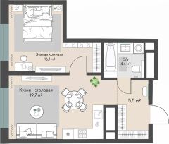 Продаётся 1-комнатная квартира в строящемся доме (Дом 1 этап 1.1), срок сдачи: I-кв. 2028, общей площадью 45.7 кв.м., на 12 этаже.