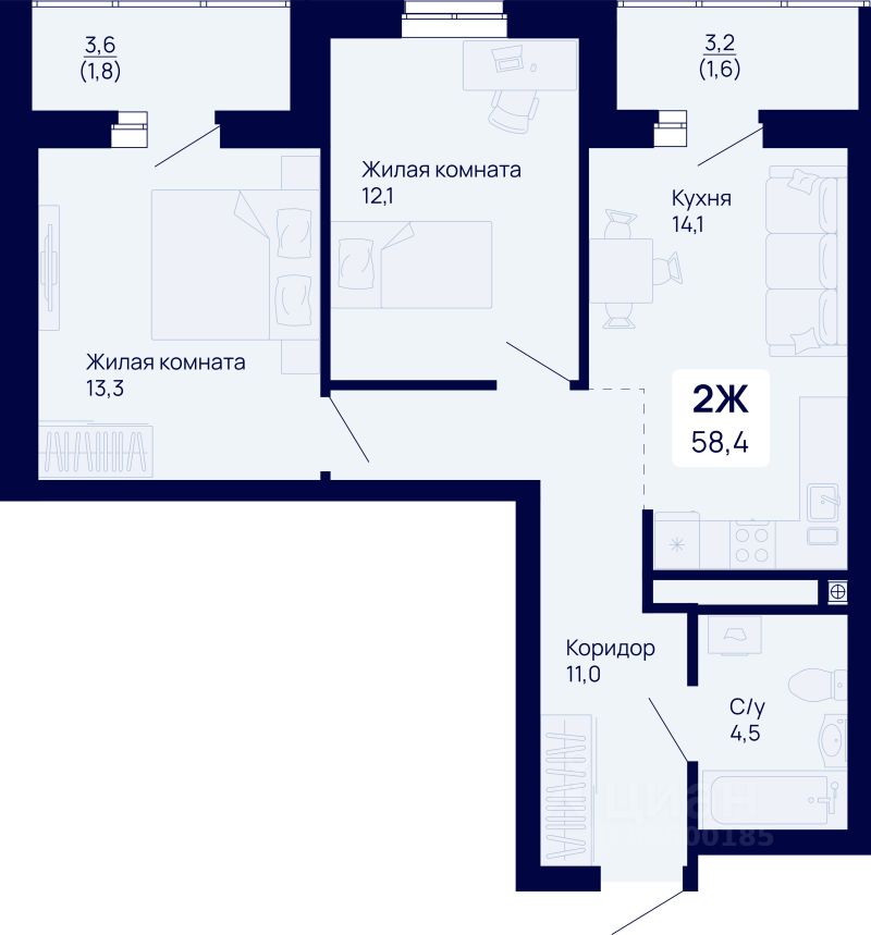 Продаётся 2-комнатная квартира в строящемся доме (Дом 1), срок сдачи: III-кв. 2026, общей площадью 58.4 кв.м., на 10 этаже. Новый жилой комплекс "Галактика" от застройщика "Ривьера-Инвест-Екб" расположен в г. Екатеринбург на ул. проспект Космонавтов.
