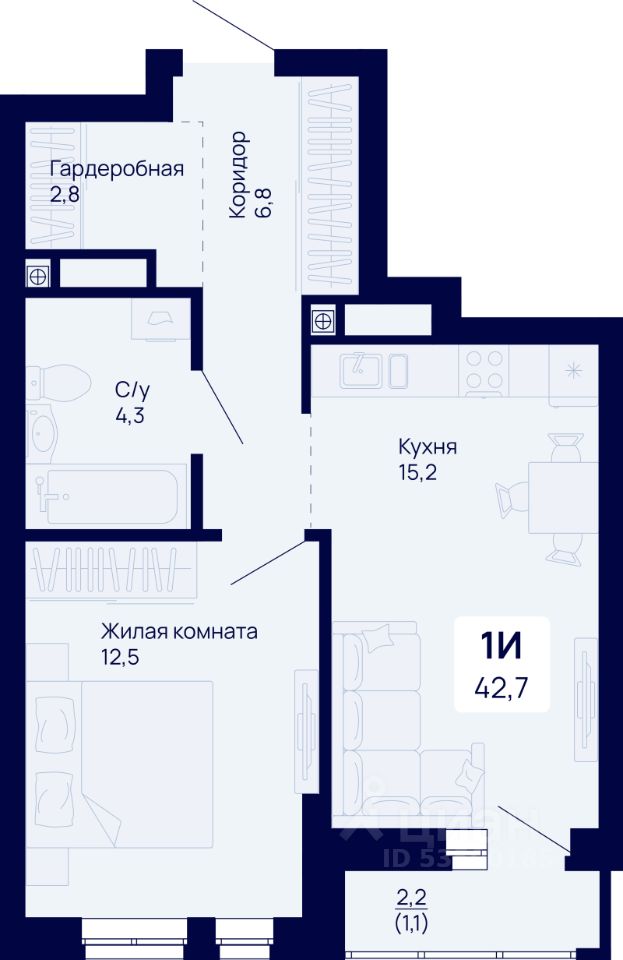 Продаётся 1-комнатная квартира в строящемся доме (Дом 1), срок сдачи: III-кв. 2026, общей площадью 42.7 кв.м., на 18 этаже. Новый жилой комплекс "Галактика" от застройщика "Ривьера-Инвест-Екб" расположен в г. Екатеринбург на ул. проспект Космонавтов.