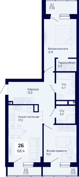 Продаётся 2-комнатная квартира в строящемся доме (Дом 1), срок сдачи: III-кв. 2026, общей площадью 68.4 кв.м., на 10 этаже. Новый жилой комплекс "Галактика" от застройщика "Ривьера-Инвест-Екб" расположен в г. Екатеринбург на ул. проспект Космонавтов.