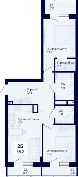 Продаётся 2-комнатная квартира в строящемся доме (Дом 1), срок сдачи: III-кв. 2026, общей площадью 68.2 кв.м., на 11 этаже. Новый жилой комплекс "Галактика" от застройщика "Ривьера-Инвест-Екб" расположен в г. Екатеринбург на ул. проспект Космонавтов.