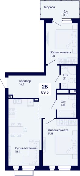 Продаётся 2-комнатная квартира в строящемся доме (Дом 1), срок сдачи: III-кв. 2026, общей площадью 69.3 кв.м., на 2 этаже. Новый жилой комплекс "Галактика" от застройщика "Ривьера-Инвест-Екб" расположен в г. Екатеринбург на ул. проспект Космонавтов.
