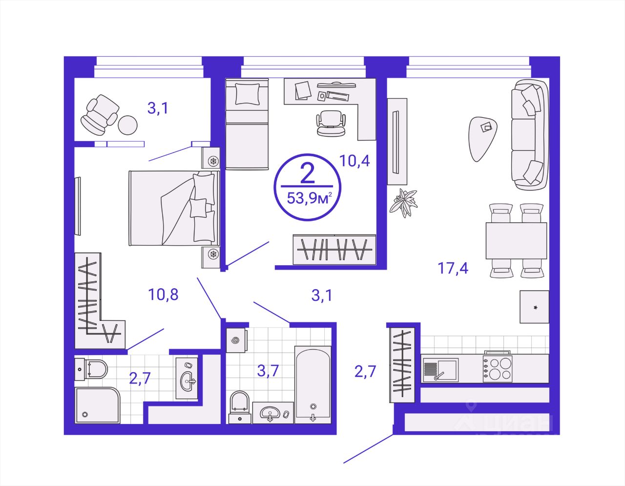 Общая площадь52,34 м²