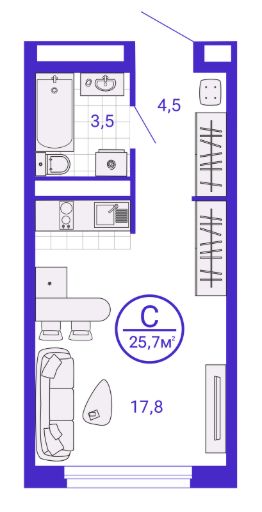 Общая площадь27,31 м²
