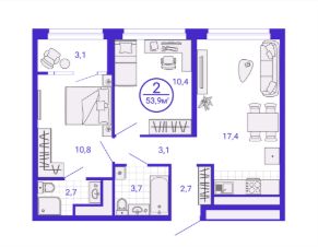 Общая площадь52,34 м²