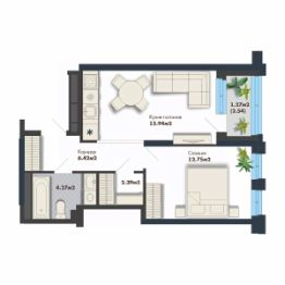 43,04 м²