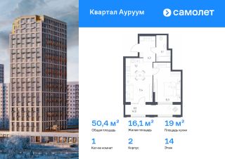 Строим кварталы для жизни с заботой о будущем. Предлагается 1-комнатная квартира бизнес-класса 50,4 кв.м в корпусе 2 на 14 этаже, в ЖК "Квартал Ауруум"