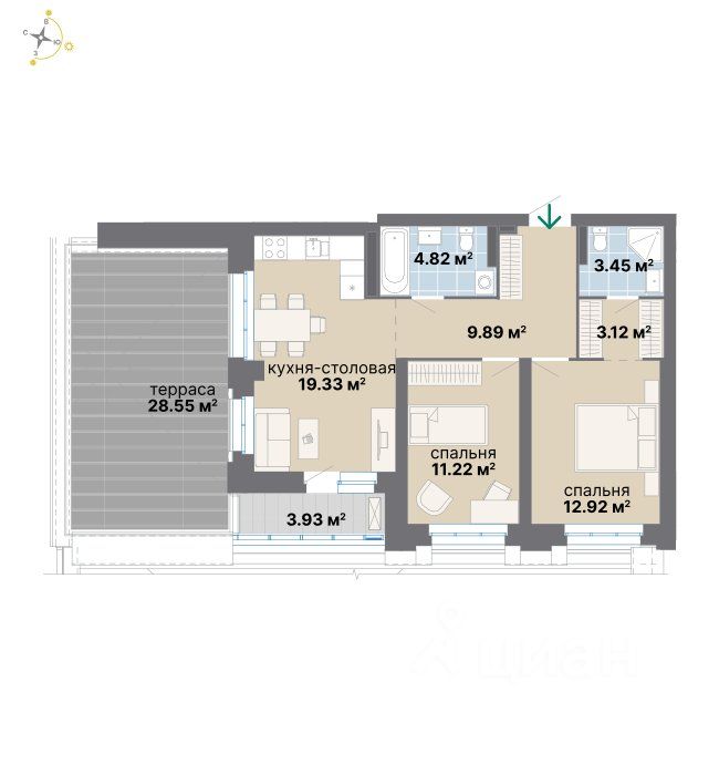 В первой очереди располагаются большой соседский центр для всевозможных активностей и спортзал для резидентов. Под домом — вместительный подземный паркинг, а в закрытом для машин дворе хватит места для игр, прогулок, отдыха и общения.