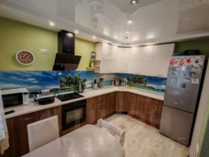 В квартире три спальни, гостиная и кухня. Все окна в квартире пластиковые, остекление лоджии из алюминия, межкомнатные двери поменяны, установлена хорошая входная сейф-дверь, заменена вся электро проводка, стены выровнены, совмещённый санузел в кафеле, теплые полы везде кроме одной комнаты, на полу в прихожей и кухне плитка, на полу в комнатах ламинат, потолки натяжные с разными режимами освещения. В квартире остаются и входят в стоимость: два встроенных шкафа, кухонный гарнитур без бытовой техники, кондиционер в гостиной.