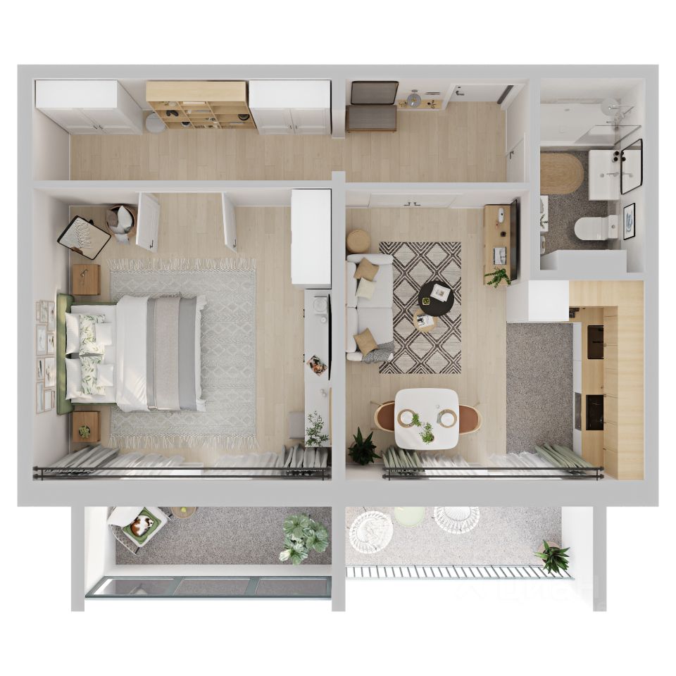 Площадь 53,47 м² свобода планировки под ваш стиль жизни