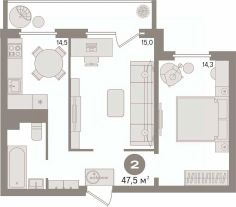 В продаже 2-комнатная квартира площадью 47.5 кв.м. расположенная по адресу: г. Екатеринбург, ул. Черепанова, д. 12, расположенная на 1 этаже, 9-этажного дома.