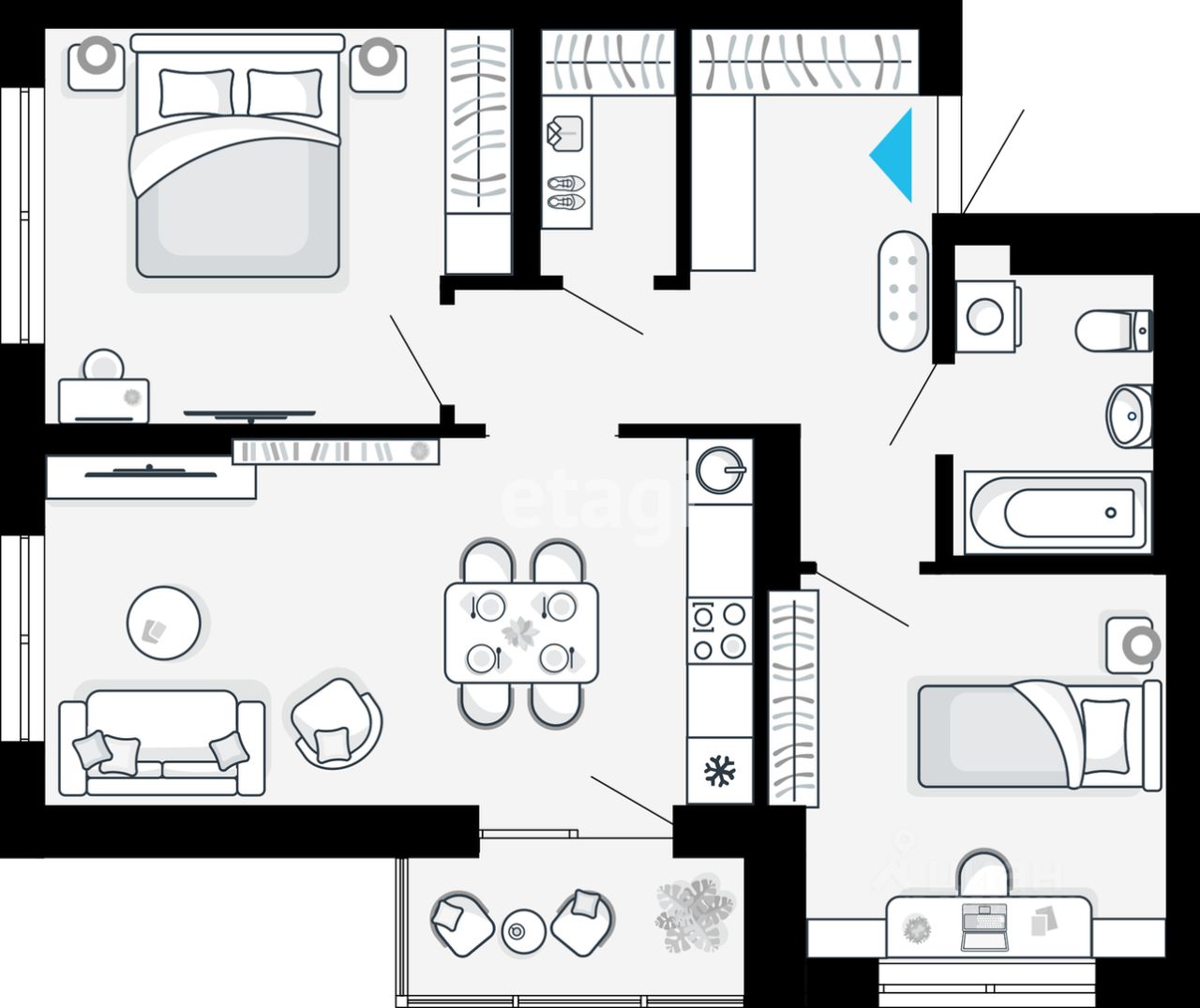 В продаже 2х комнатная квартира в Первом доме в ЖК "Небосклоны". Самой светлой и удобной планировки с видом на Уктусские горы - окна на Ю-В и Ю-З, на комфортном 5м этаже. Кухня-гостиная 19 м2 с лоджией и окном, две спальни 13 и 11 м2, гардеробная и просторный санузел. Отделка предчистовая.