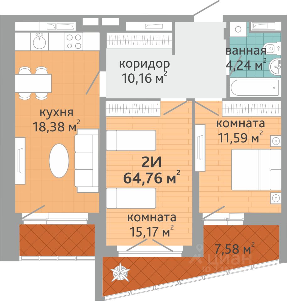 Продаётся 2-комнатная квартира в сданном доме (Коперника, 33), срок сдачи: III-кв. 2025, общей площадью 64.76 кв.м., на 17 этаже. Новый жилой дом от застройщика "СЗ Дельа-Групп" расположен по адресу: г. Екатеринбург, улица Викулова (дублёр).