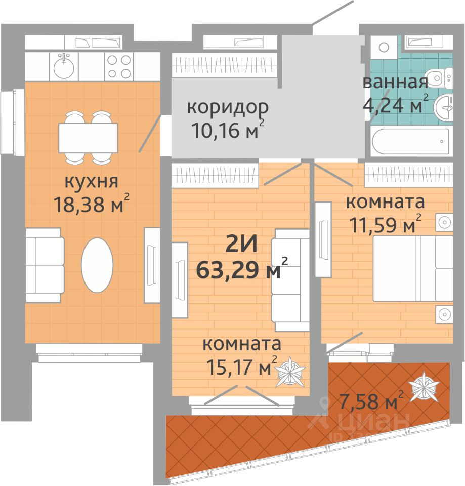 Продаётся 2-комнатная квартира в сданном доме (Коперника, 33), срок сдачи: III-кв. 2025, общей площадью 63.29 кв.м., на 20 этаже. Новый жилой дом от застройщика "СЗ Дельа-Групп" расположен по адресу: г. Екатеринбург, улица Викулова (дублёр).