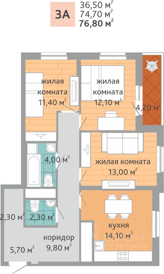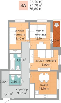 Общая площадь76,8 м²