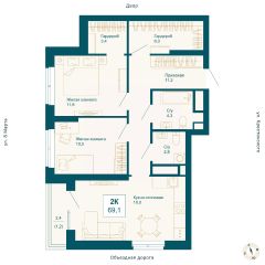 Общая площадь69,1 м²