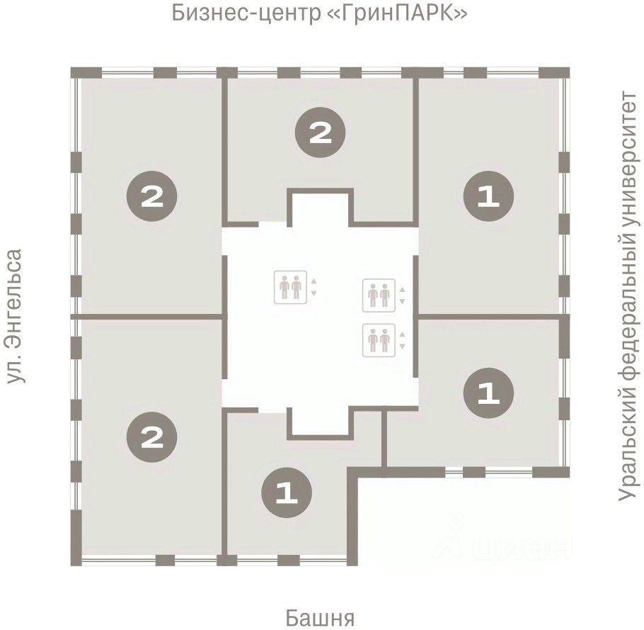 Две башни — 21 и 25 этажей — объединены четырехэтажной галереей. 169 квартир со свободными планировками, средней площадью в 128 м² и высотой потолков до 3,3 метра напоминают, что на Урале живут люди, привыкшие к простору.