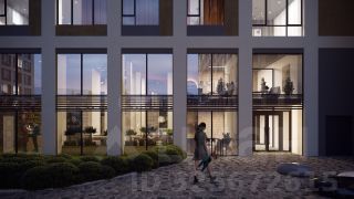 Современная архитектура. Долговечные фасады из навесных панелей и штукатурки, увеличенные окна и французские балконы формируют уникальный узнаваемый образ. Ночная подсветка выделяет дом среди застройки района и подчеркивает выразительность его силуэта.