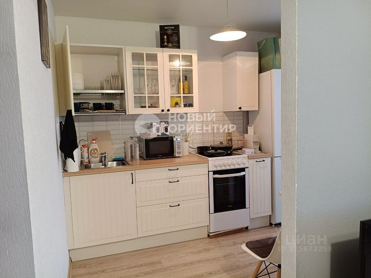 Кухня оснащена гарнитуром IKEA.